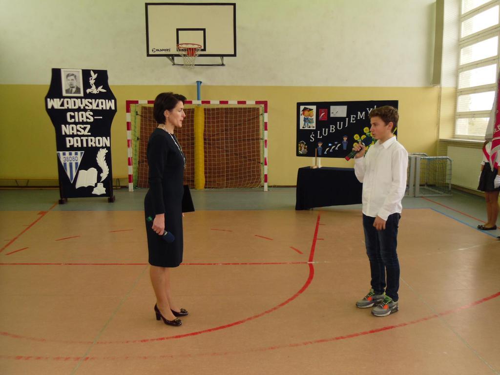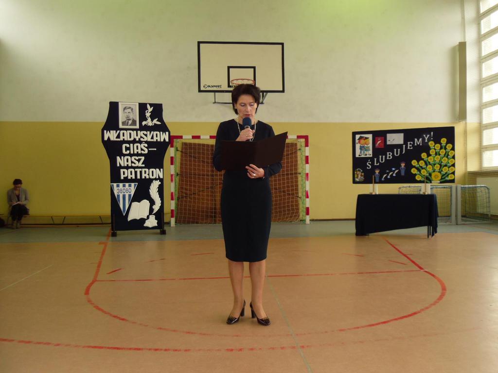 Zgodnie z tradycją tego dnia odbyło się ślubowanie pierwszoklasistów szkoły podstawowej i gimnazjum oraz uroczyste pasowanie na ucznia. Najmłodsi uczniowie przygotowali część artystyczną , na którą składały się wiersze i piosenki.