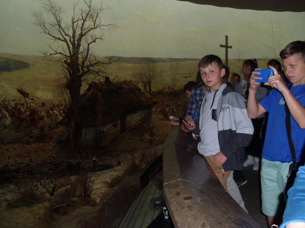Na początku uczniowie podziwiali dziewiętnastowieczne malowidło (15x114m) - Panoramę Racławicką. Pomysłodawcą Panoramy był znany lwowski malarz Jan Styka (1858-1925), który zaprosił do współpracy m.in. znakomitego batalistę Wojciecha Kossaka (1856-1942).