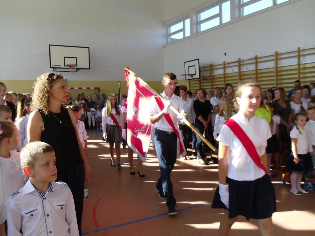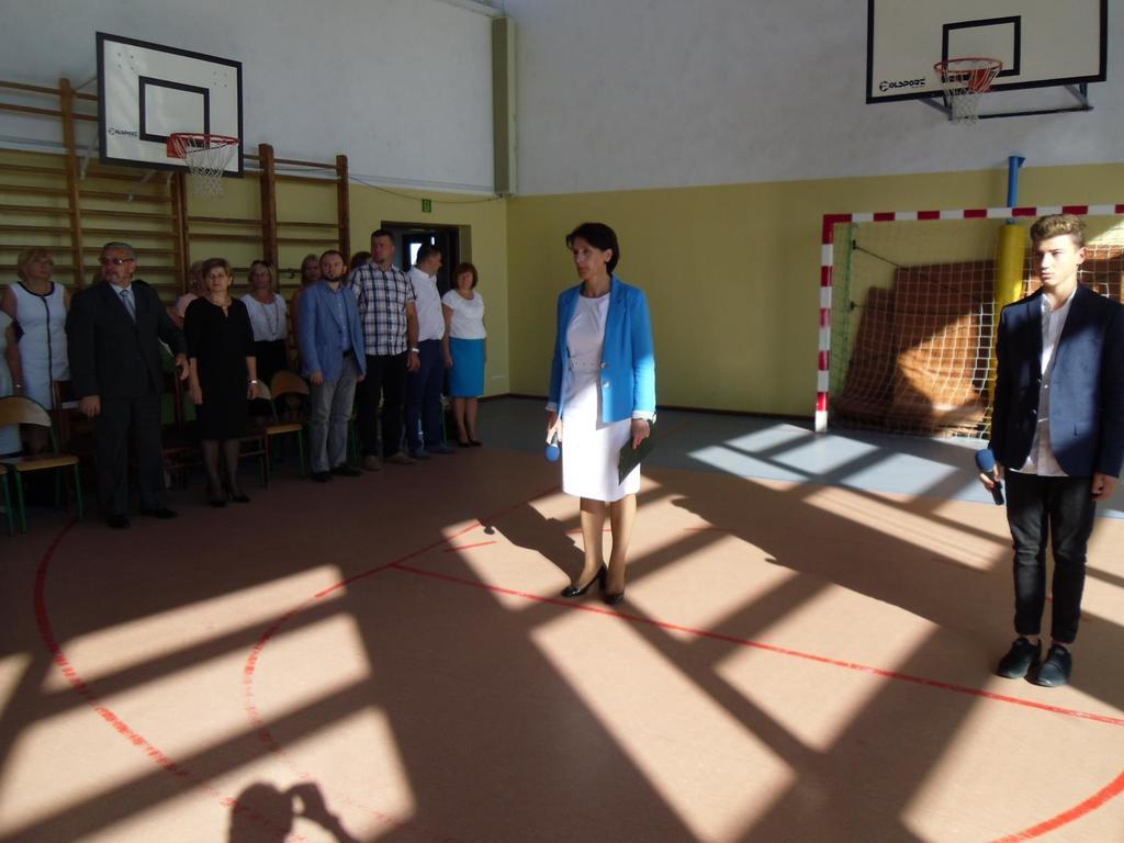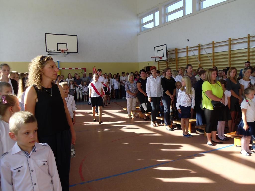 W dniu 1września o godz. 9.00 na hali sportowej odbyła się inauguracja nowego roku szkolnego 2016/1017. Uczniowie pełni optymizmu gromkimi brawami przywitali gości i grono pedagogiczne, z którym będą pracować w ciągu rozpoczynającego się roku szkolnego. Pani Jolanta Kordel-Wróblewska - dyrektor szkoły przywitała zgromadzonych uczniów, rodziców i nauczycieli.