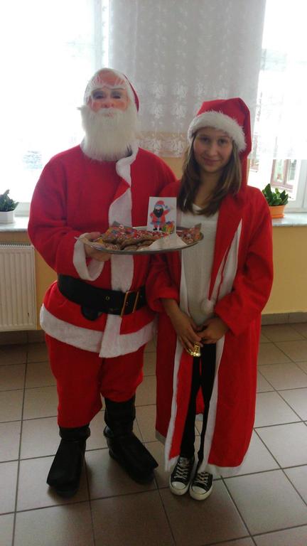 Chętnie pozowali do zdjęć z uczniami oraz z nauczycielami. Mikołajów zaprosiły opiekunki Samorządu Uczniowskiego: