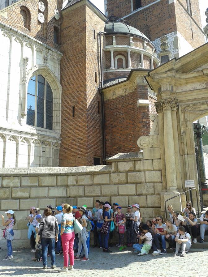 Drugi dzień wyjazdu poświęcony był na zwiedzanie dawnej stolicy Polski. Stare Miasto z Sukiennicami, Kościołem Mariackim, Barbakanem, Bramą Floriańską, Plantami oraz Wzgórze Wawelskie z Zamkiem Królewskim, Katedrą i Smoczą Jamą dostarczyły uczniom niezapomnianych wrażeń.