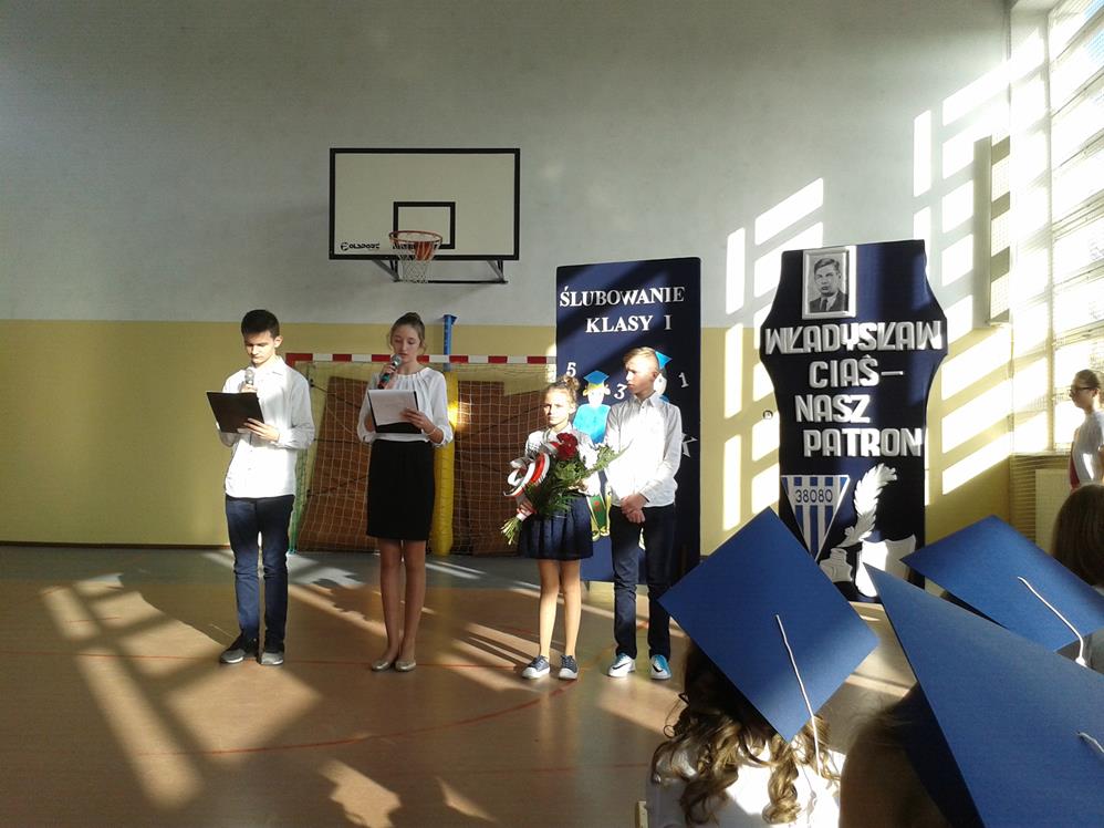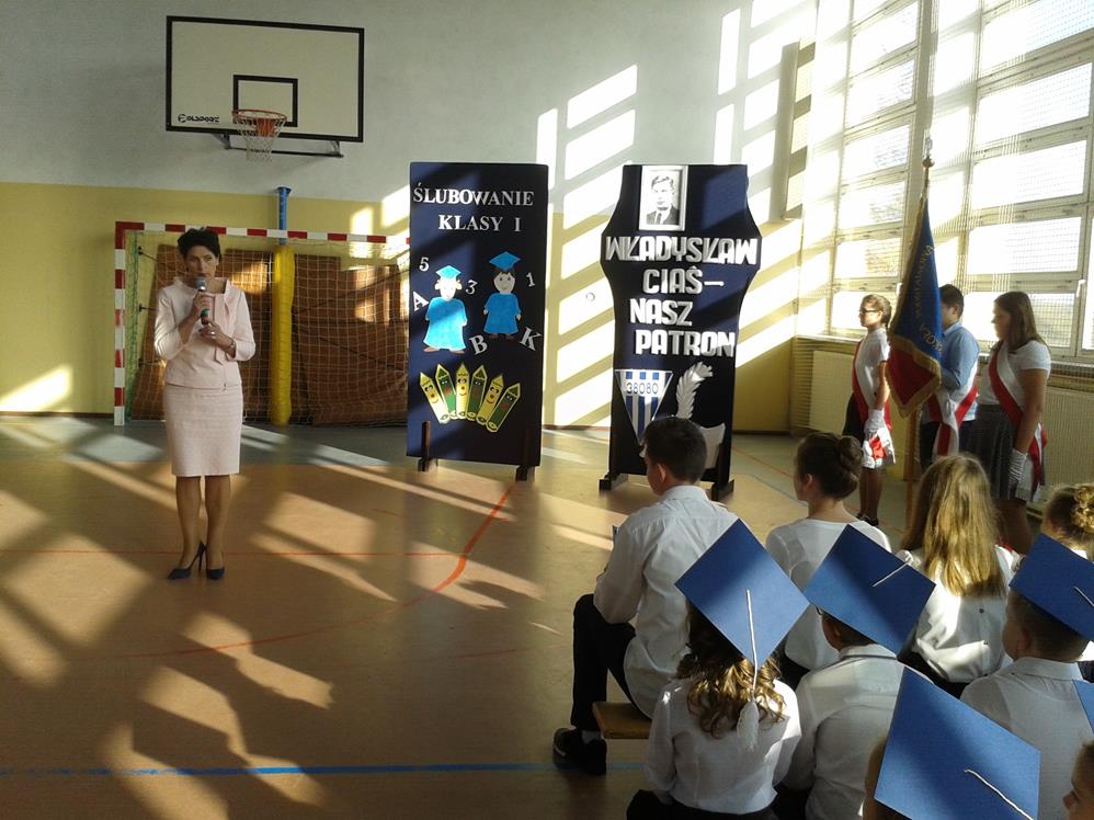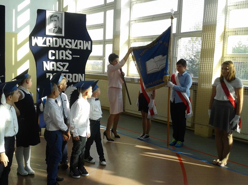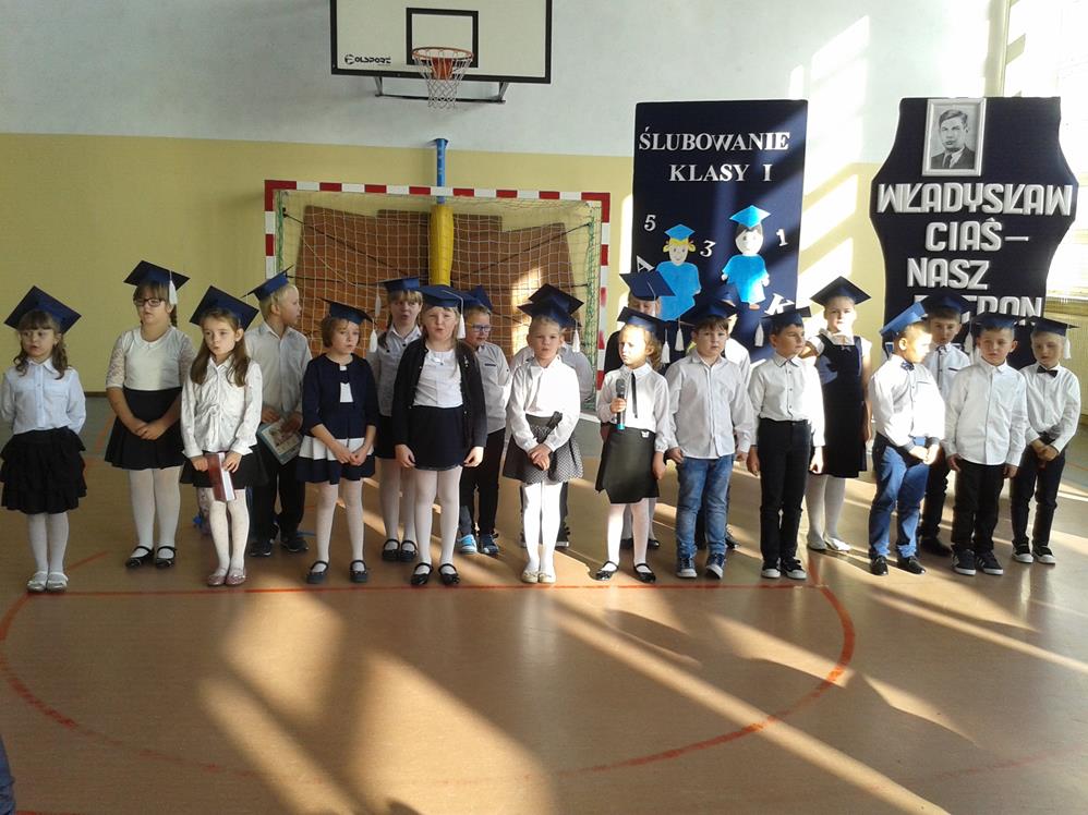 Ten dzień jest również szczególny dla uczniów klasy pierwszej, gdyż w Dniu Patrona zostają przyjęci do braci szkolnej i stają się prawowitymi uczniami szkoły. Dzieci w obecności dyrekcji, grona pedagogicznego, rodziców i uczniów złożyły ślubowanie na sztandar szkoły. Po ślubowaniu Pani Dyrektor Jolanta Kordel – Wróblewska i Pani Dyrektor Anna Chojnacka dokonały aktu pasowania na uczniów. W tym dniu uczniowie klasy I sadzą pamiątkowe drzewko w „alei pierwszoklasistów” i nadają mu imię Władzio. Było tak i w tym roku dzieci wraz z dyrekcją, rodzicami i wychowawczynią Mirosławą Lesiak posadziły swoje drzewko.