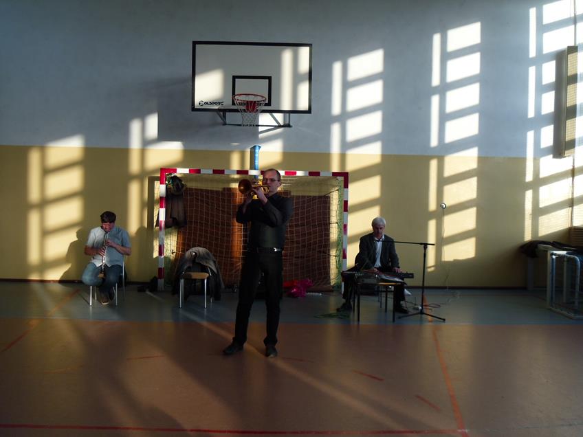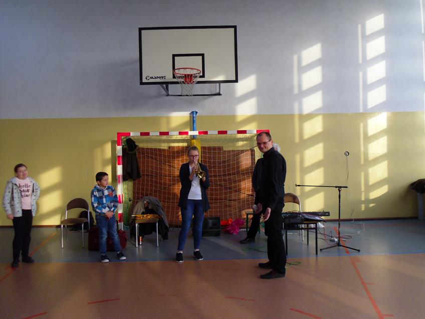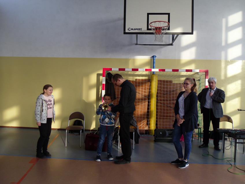 Artyści - muzycy zaprezentowali następujące instrumenty: trąbkę, obój, kornet i puzon sopranowy. Przedstawione zostały standardy muzyki rozrywkowej. Nawiązano do klasycznego tańca, jakim jest walc angielski. Tańczyli nauczyciele i dzieci.