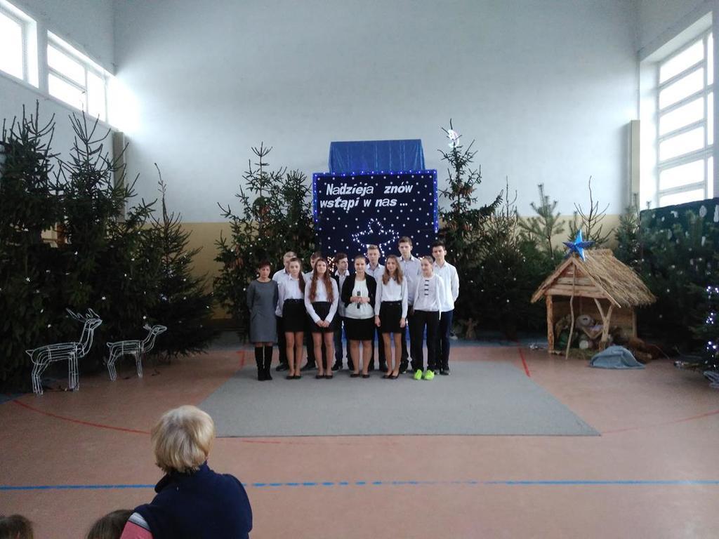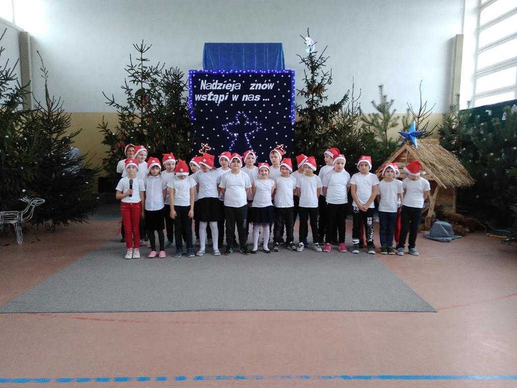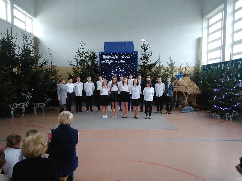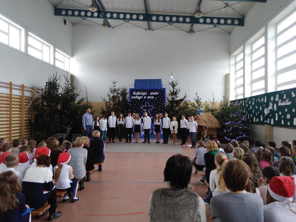 21 grudnia, już po raz kolejny, odbyło się w naszej szkole wspólne kolędowanie uczniów klas I-VII szkoły podstawowej i oddziałów gimnazjalnych, które wprowadziło wszystkich w atmosferę świąt Bożego Narodzenia. Każda klasa przy wsparciu wychowawcy prezentowała wybraną droga losowania kolędę lub pastorałkę.