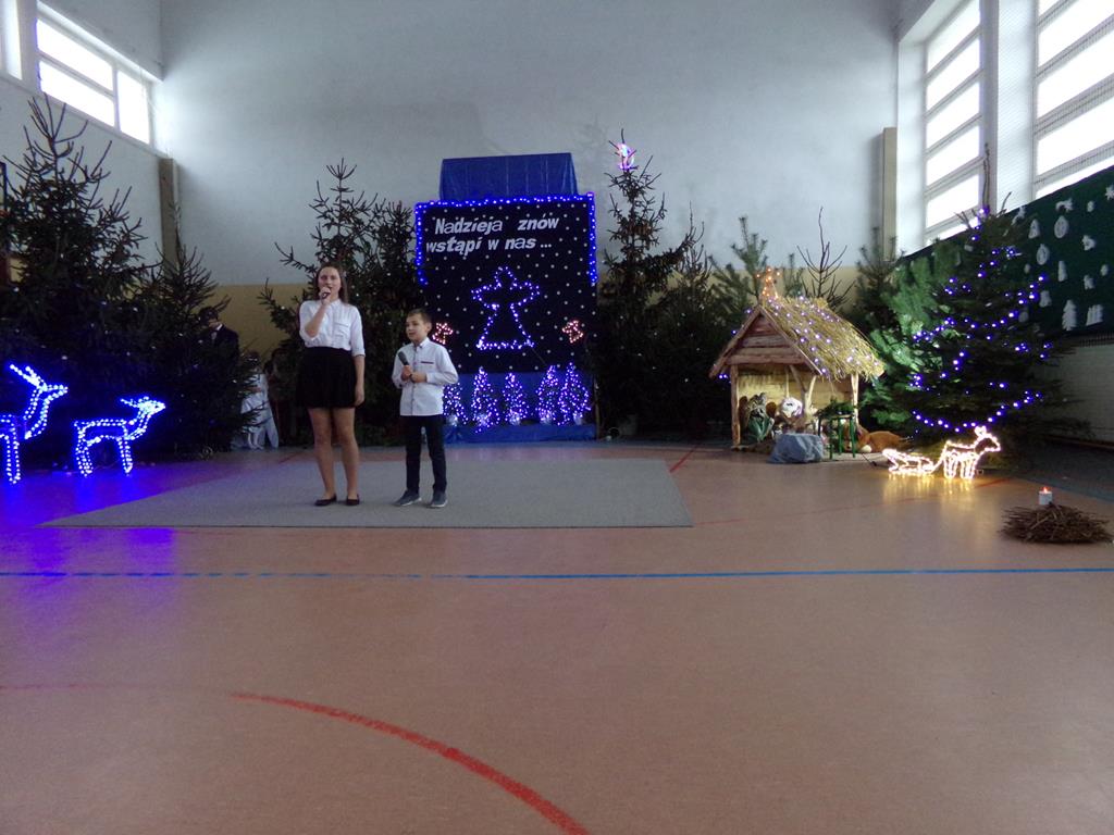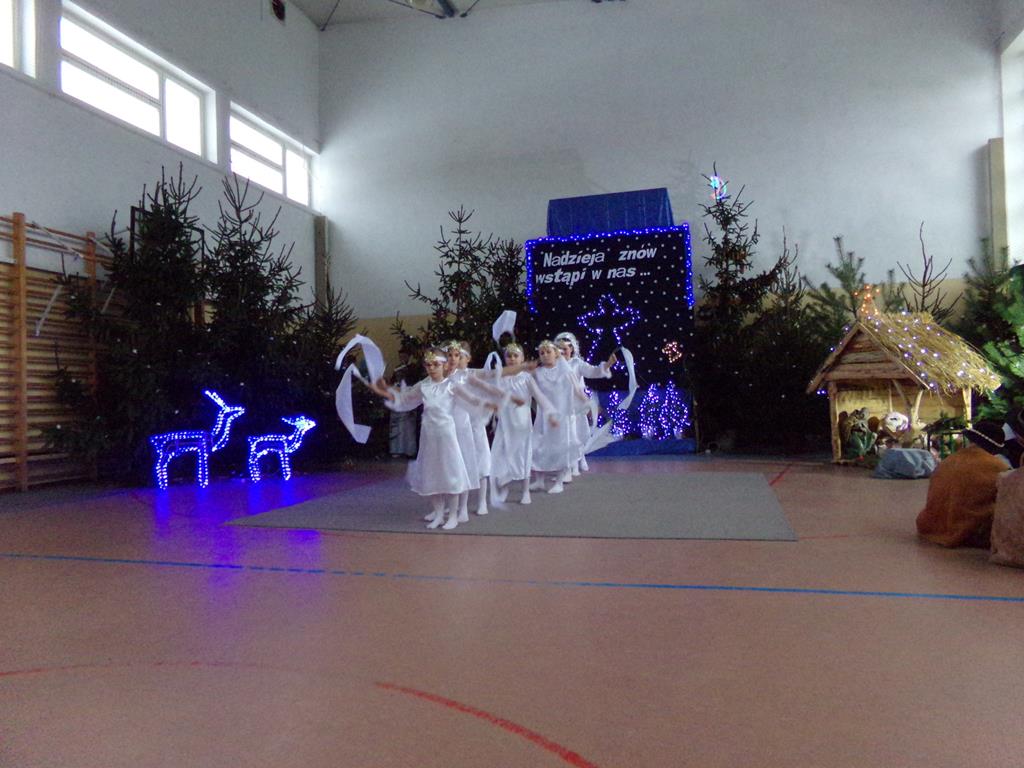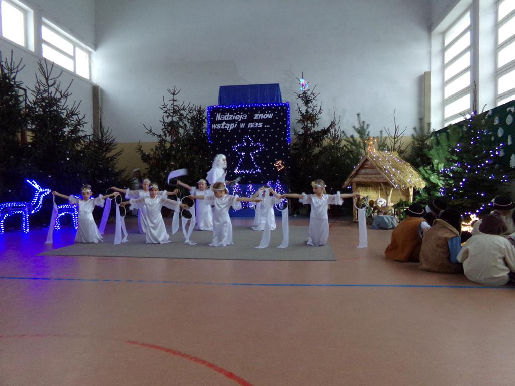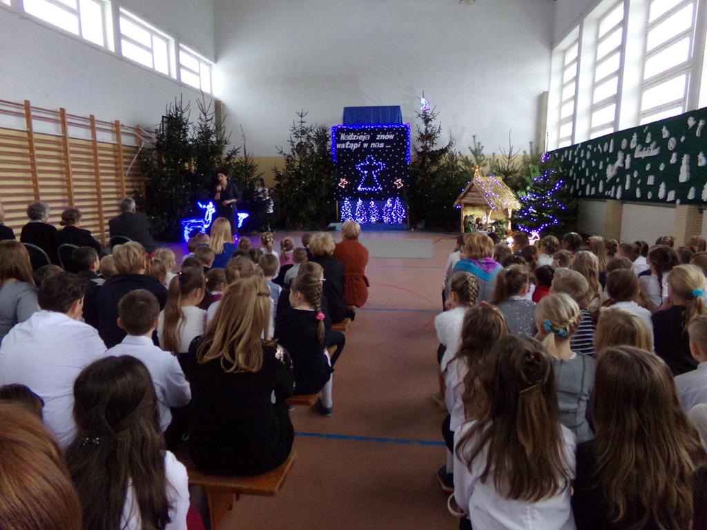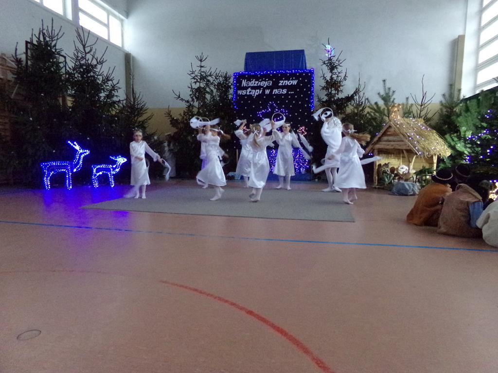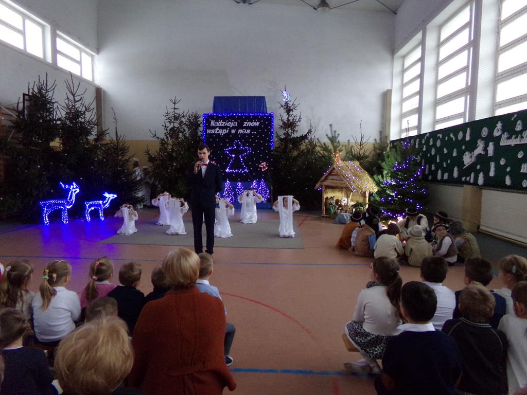 Tradycją naszej szkoły są coroczne jasełka przygotowane przez uczniów pod opieką nauczycieli. Nie inaczej było w tym roku, 21grudnia 2017 r. w sali gimnastycznej zgromadzona widownia – władze gminne, ksiądz proboszcz, dyrekcja szkoły, nauczyciele emerytowani , obecni pracownicy naszej szkoły oraz uczniowie i ich rodzice – mogła po raz kolejny przeżyć historię Maryi i Józefa oraz narodzenie Jezusa. Piękna scenografia wprowadziła zgromadzoną publiczność w świąteczny nastrój. Całości towarzyszyły pastorałki, kolędy oraz wirujące w tańcu z szarfami śnieżynki. Dopełnieniem całości były piękne stroje artystów przygotowane przez rodziców.