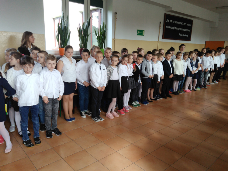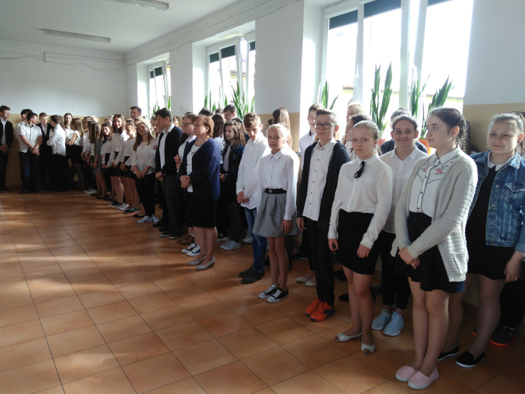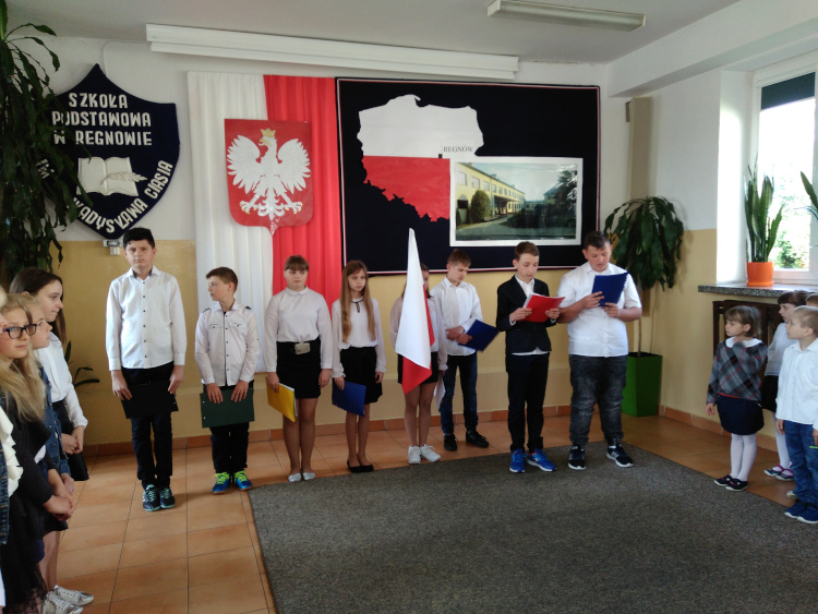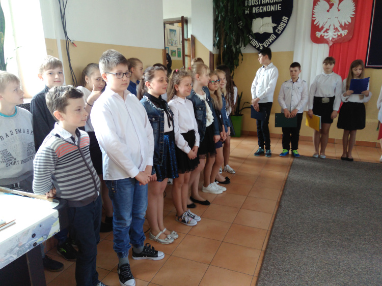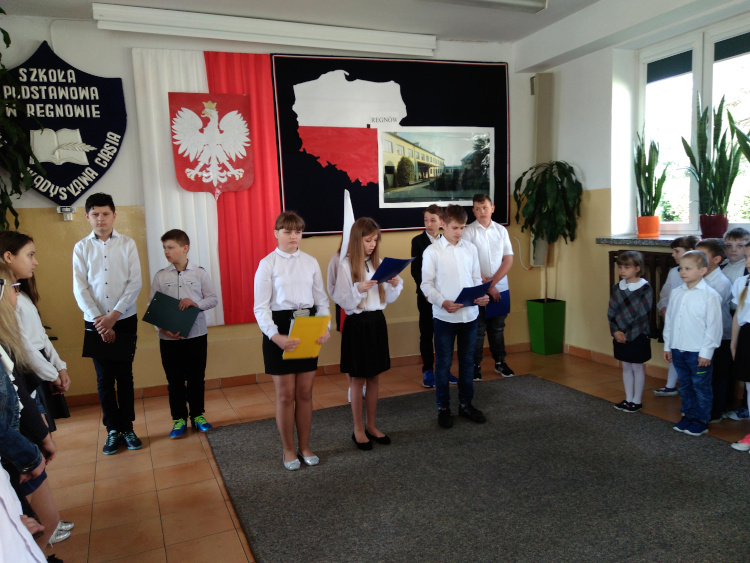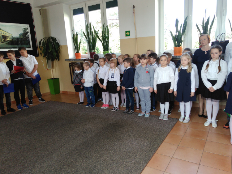 30 kwietnia w naszej szkole odbył się uroczysty apel poświęcony 228 rocznicy uchwalenia Konstytucji 3 Maja. Uroczystość rozpoczęła się od odśpiewania hymnu państwowego. Następnie uczniowie klasy szóstej przybliżyli wszystkim wydarzenia historyczne i okoliczności powstania pierwszej polskiej konstytucji.