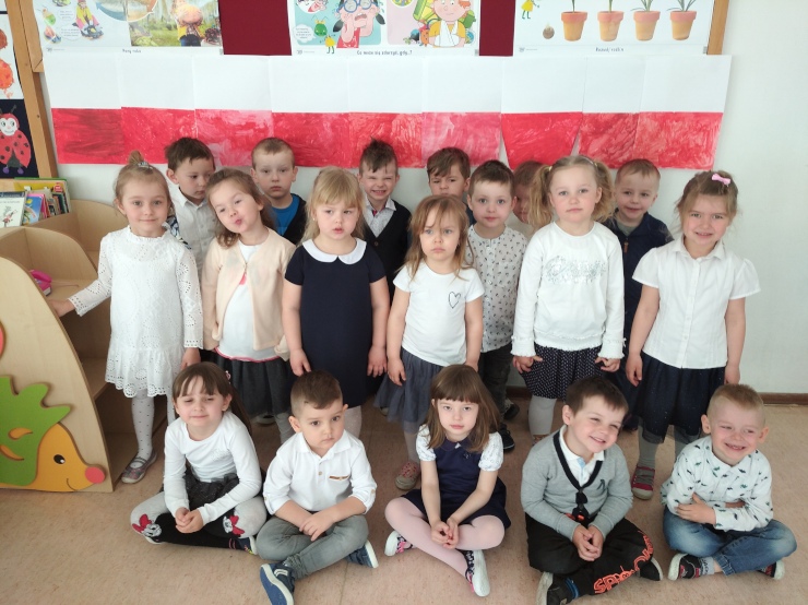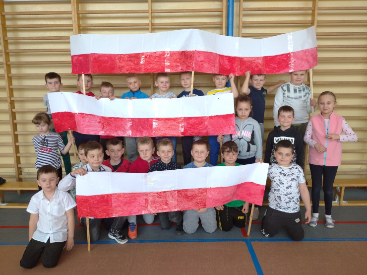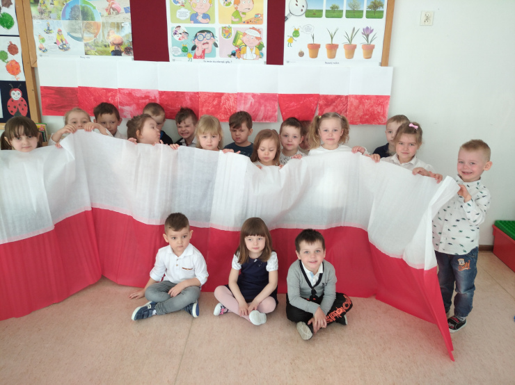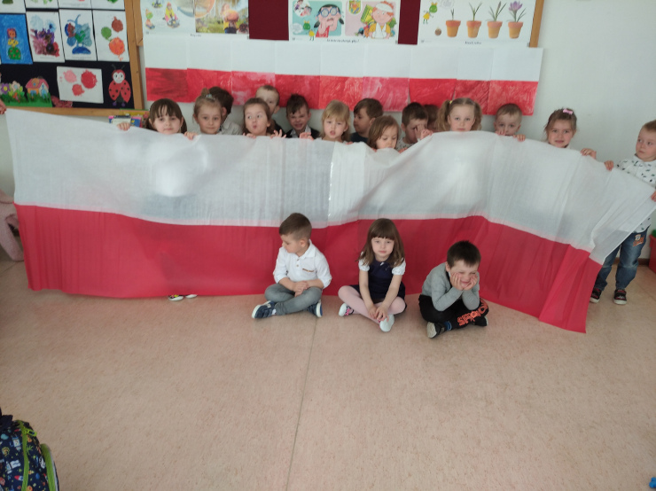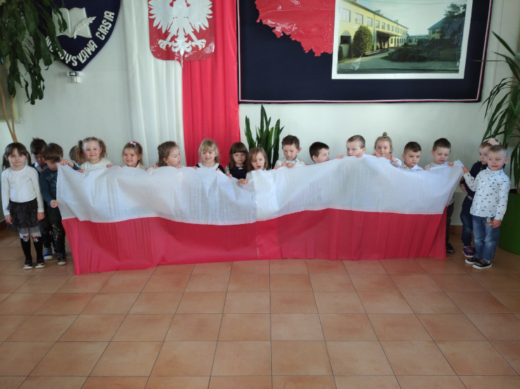 30 kwietnia przedszkolaki ozdobiły szkołę biało-czerwoną flagą. Miała ona długość 11 metrów 15 cm. Dzieci z 0A i 0B połączyły swoje ręcznie malowane chorągiewki z flagą zrobioną z białej i czerwonej bibuły najmłodszych przedszkolaków z 0C. Ze swojej pracy dzieci były bardzo dumne!