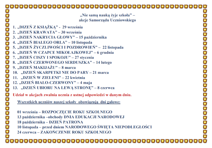 Wszystkich uczniów naszej szkoły obowiązują dni galowe: