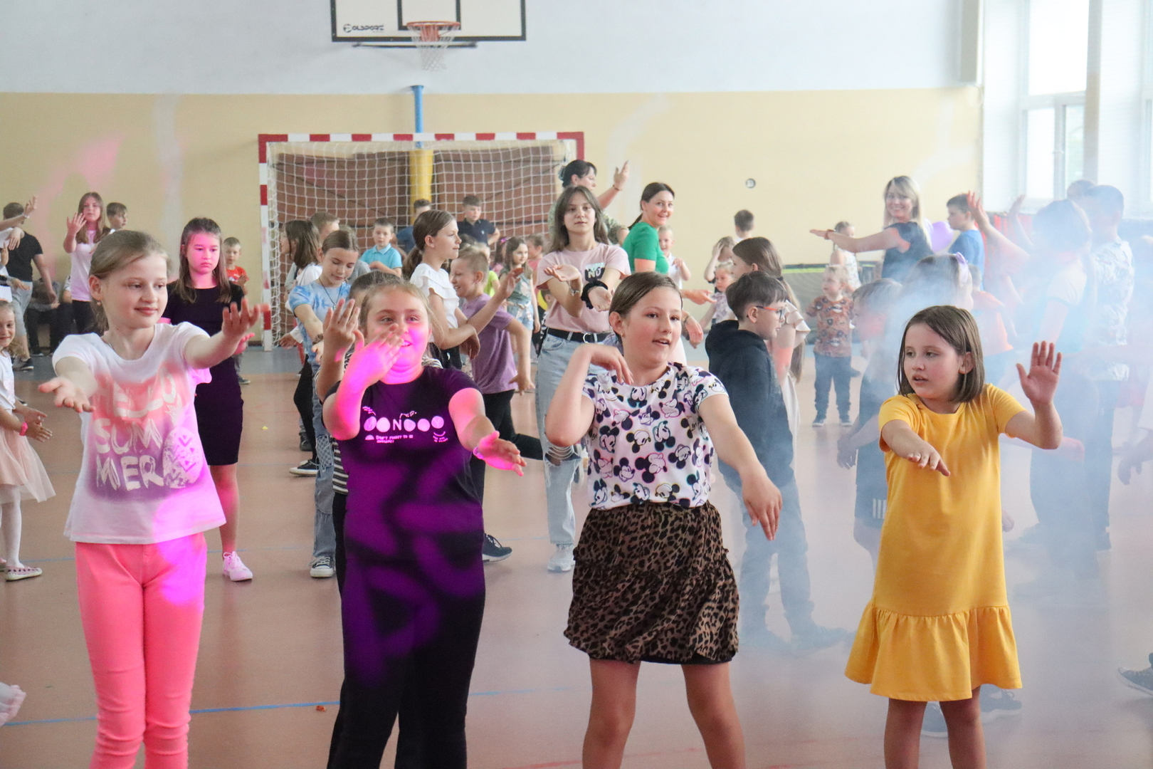 Cała społeczność uczniowska z niecierpliwością oczekiwała na Dzień Dziecka, który ze względu na nieobecność uczniów uczestniczących w wycieczce odbył się drugiego, a nie pierwszego czerwca. Rada Rodziców naszej szkoły przygotowała dla wszystkich uczniów poczęstunek – ciepłe hamburgery i hot dogi, lody i soki. Po obfitym posiłku była zabawa taneczna. W rytm dyskotekowych przebojów, prezentowanych przez Dee Jay Archi, uczniowie wraz z nauczycielami wesoło spędzili resztę dnia. Integracja, życzliwość, przyjazny uśmiech, serdeczna atmosfera, radość – to słowa, którymi możemy określić obchody Dnia Dziecka w naszej szkole.
