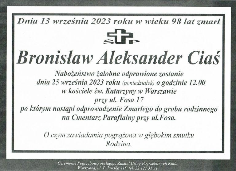 Zapewniamy, że Pan Bronisław Ciaś zostanie na zawsze w naszej pamięci.
