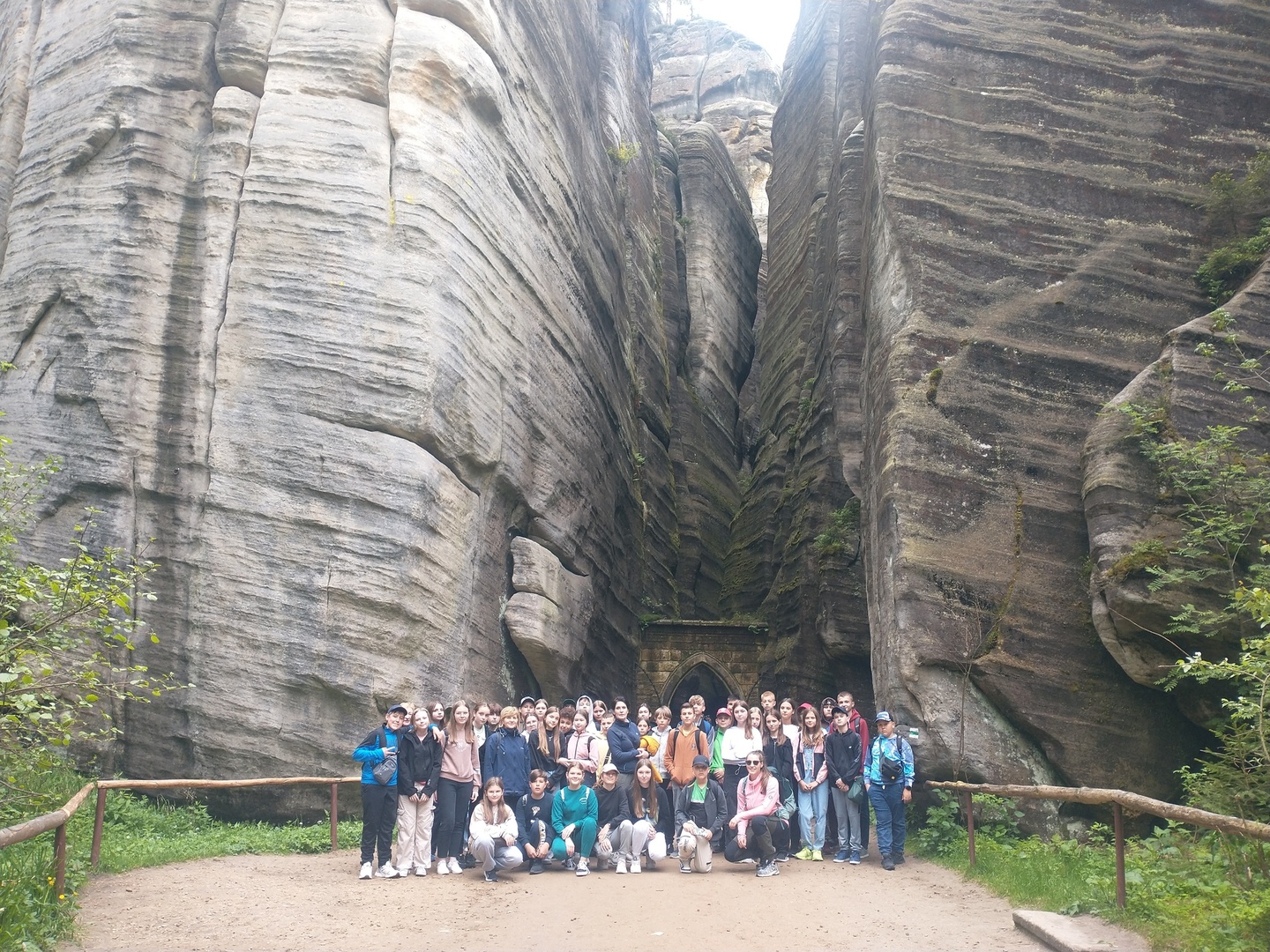 W dniach 20 – 23 maja 2024r. uczniowie klas V - VII byli na wyciecze szkolnej. Celem wyjazdu było zwiedzanie Kotliny Jeleniogórskiej, Skalnego Miasta i Pragi. Uczniowie zwiedzili Szklarską Porębę, miasto Ducha Gór, który według legendy władał całymi Karkonoszami. Następnie dotarli do malowniczo położonego Wodospadu Szklarki, skąd udali się do Chybotka i do punktu widokowego Złoty Widok. Kolejnego dnia dzieci przybyły do urokliwej Pragi. Odwiedzili tam zabytkową część miasta: Hradczany z zamkiem i katedrą, Rynek z Ratuszem Staromiejskim oraz Most Karola. Adrspach to szalenie urodziwe czeskie Skalne Miasto wyjęte dosłownie z baśniowych kart. Dzieci, spacerując pomiędzy monumentalnymi i fantazyjnymi ostańcami z piaskowca doszukiwali się skał o następujących nazwach: Dzban, Głowa Cukru, Diabelski Most oraz Kochanków. Ostatniego dnia wycieczki uczniowie podążali tajemniczą i magiczną ścieżką sztolni Kowary., gdzie zobaczyli bogactwo ekspozycji związanych zarówno z geologią Sudetów jak i górniczymi technikami wydobycia.