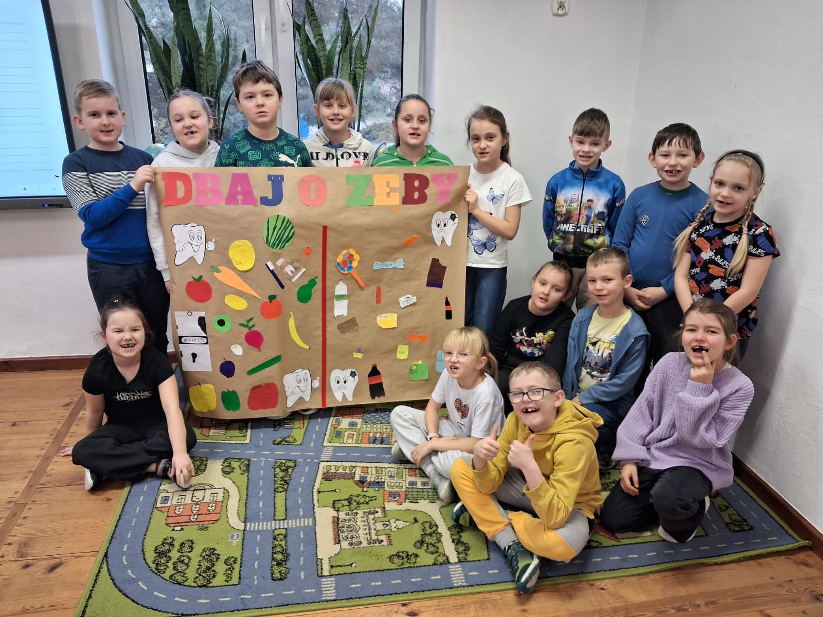 Szczotka, pasta, kubek, ciepła woda. Tak się zaczyna wielka przygoda. Myjemy zęby, bo wiemy dobrze o tym. Ten, kto nie myje, ten ma kłopoty. Żeby zdrowe zęby mieć, trzeba tylko chcieć. Doskonale wie o tym klasa II.