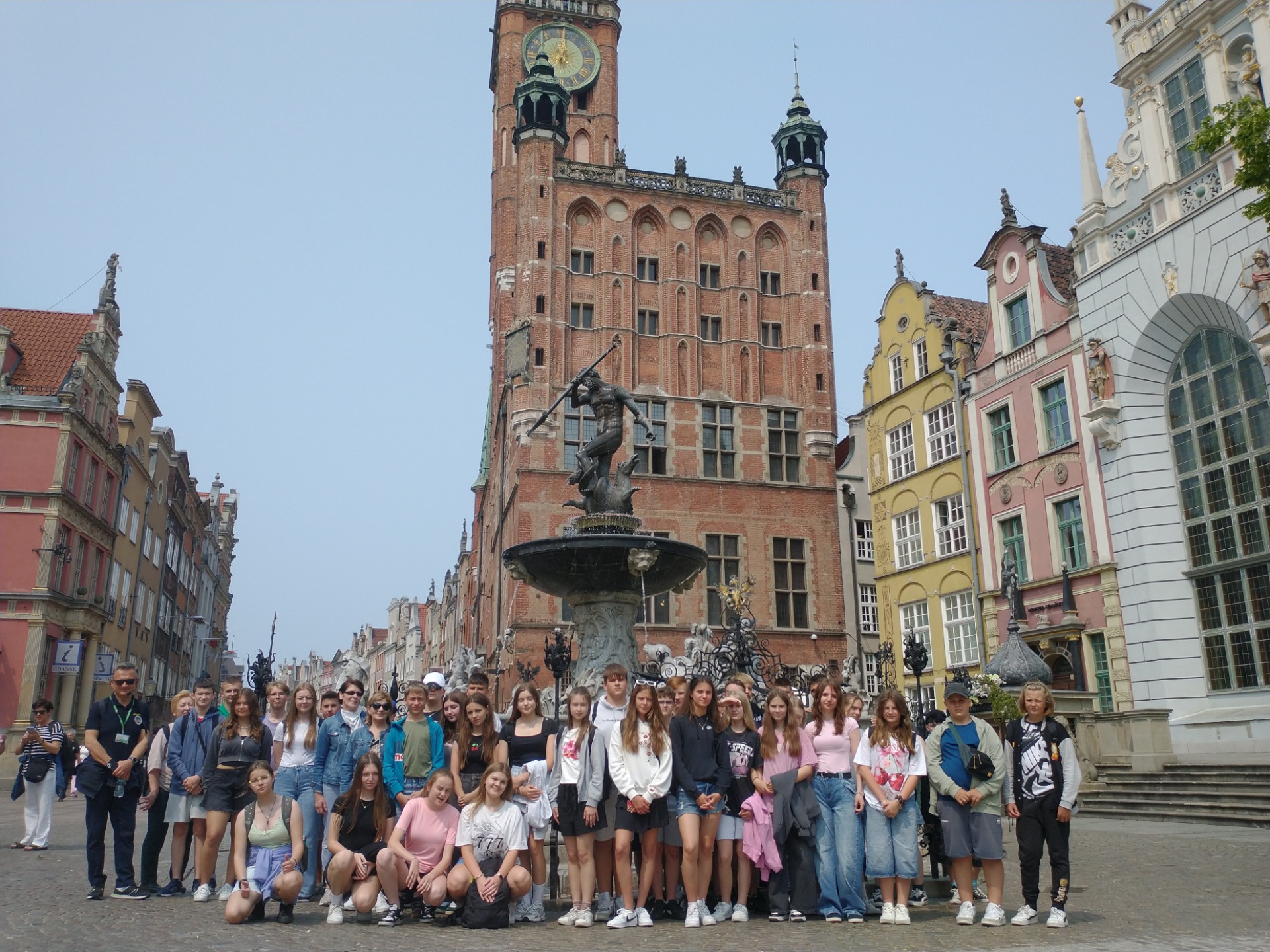 W ramach wycieczki uczniowie naszej szkoły odwiedzili wiele wyjątkowych miejsc na Pomorzu Gdańskim. Była to podróż pełna historii, pięknych widoków oraz ważnych lekcji o przeszłości naszego kraju. Naszą wycieczkę rozpoczęliśmy od zwiedzania zamku w Malborku, jednej z największych warowni gotyckich w Europie. Następnego dnia udaliśmy się na Westerplatte – symbolicznie miejsce rozpoczęcia II wojny światowej. W Gdańsku spacerowaliśmy po Starym Mieście, gdzie mogliśmy podziwiać piękną architekturę, m.in. Długi Targ, Fontannę Neptuna, Ratusz Głównego Miasta i Żuraw nad Motławą. Wizyta w Europejskim Centrum Solidarności pozwoliła lepiej zrozumieć historię walki o wolność i demokrację w Polsce. Kolejnym punktem był spacer po słynnym sopockim molo – najdłuższym drewnianym pomoście w Europie. Podczas pobytu nad morzem, odwiedziliśmy również Krynicę Morską. Zatrzymaliśmy się także przy przekopie Mierzei Wiślanej. W Stegnie zwiedziliśmy zabytkowy kościół pw. Najświętszego Serca Pana Jezusa. Na zakończenie odwiedziliśmy Muzeum Stutthof – dawny niemiecki obóz koncentracyjny. To było bardzo poruszające doświadczenie. Wycieczka była nie tylko atrakcyjna pod względem turystycznym, ale także edukacyjna i emocjonalnie angażująca. Od średniowiecznych zamków, przez piękne miasta, po miejsca pamięci – każdy dzień dostarczał nam nowych wrażeń i wiedzy o historii Polski.